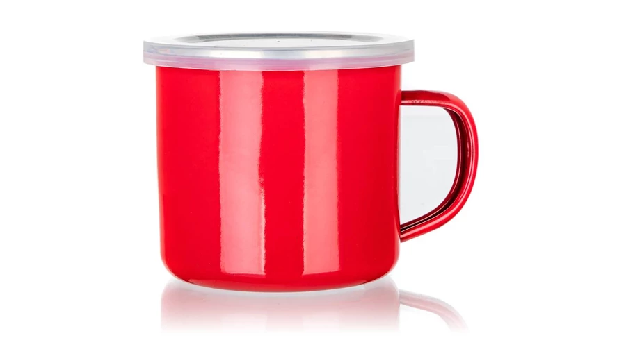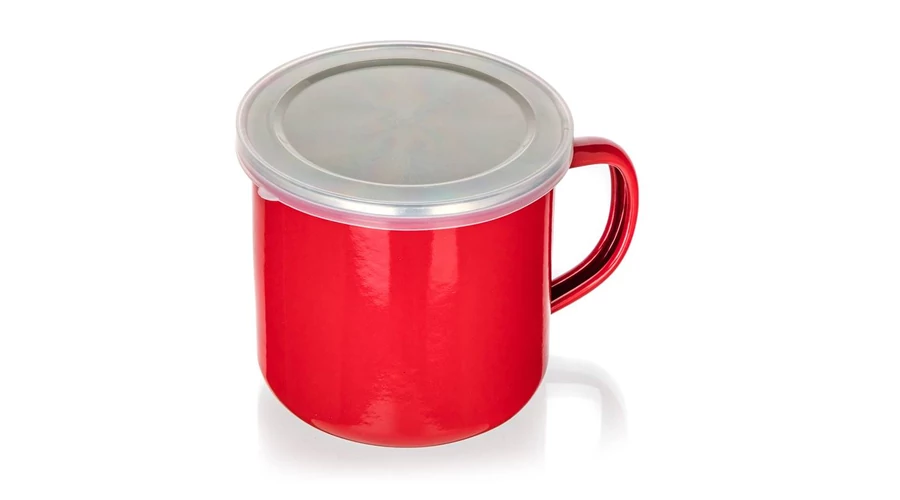 Banquet zománcozott bögre műanyag fedővel Méret: Ø 9,5 cm, magasság: 8,5 cm, kapacitás: 0,5 liter Szín: piros •1.990Ft |