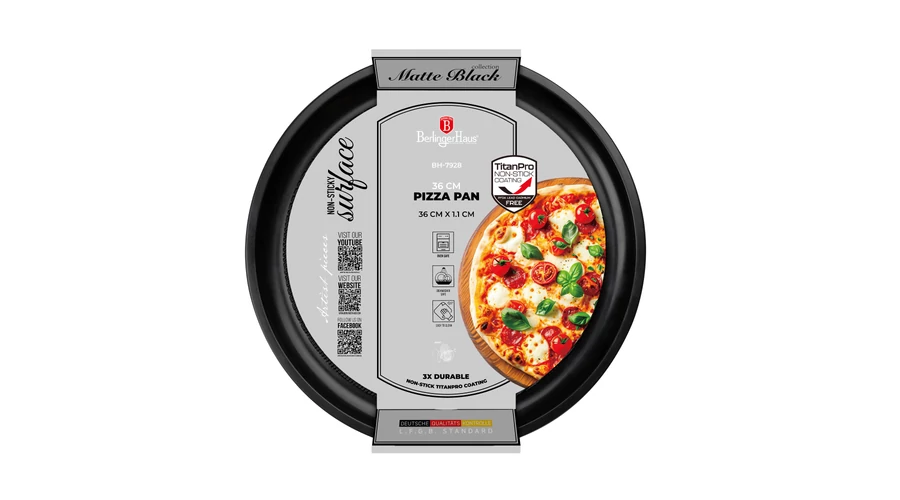 A Berlinger Haus Matte Black Collection pizzasütő forma szénacélból készült tapadásmentes titánPro bevonattal.