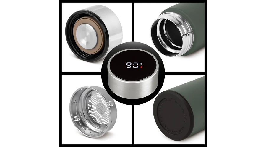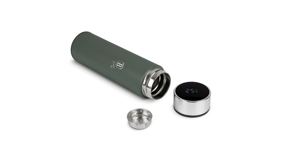 A beépített digitális hőmérő a LED kijelzőn át folyamatosan tájékoztat a palackban lévő ital hőmérsékletéről.