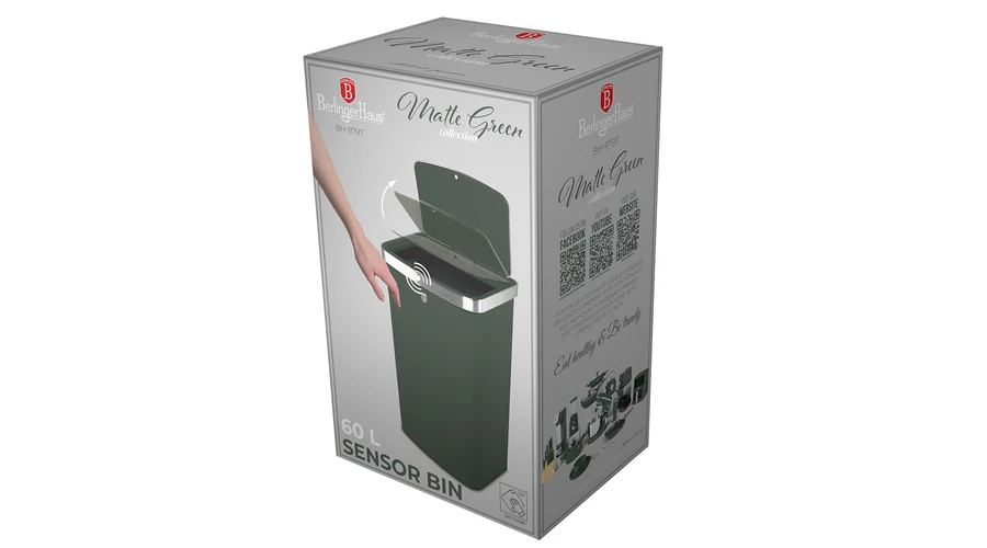 Berlinger Haus Matte Green Collection szenzor érzékelős szemetes, 60 L