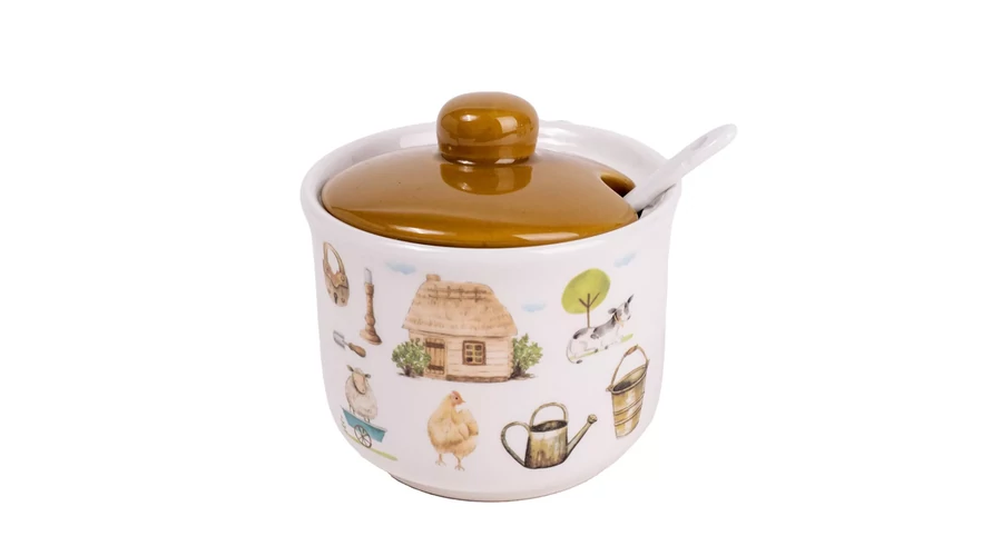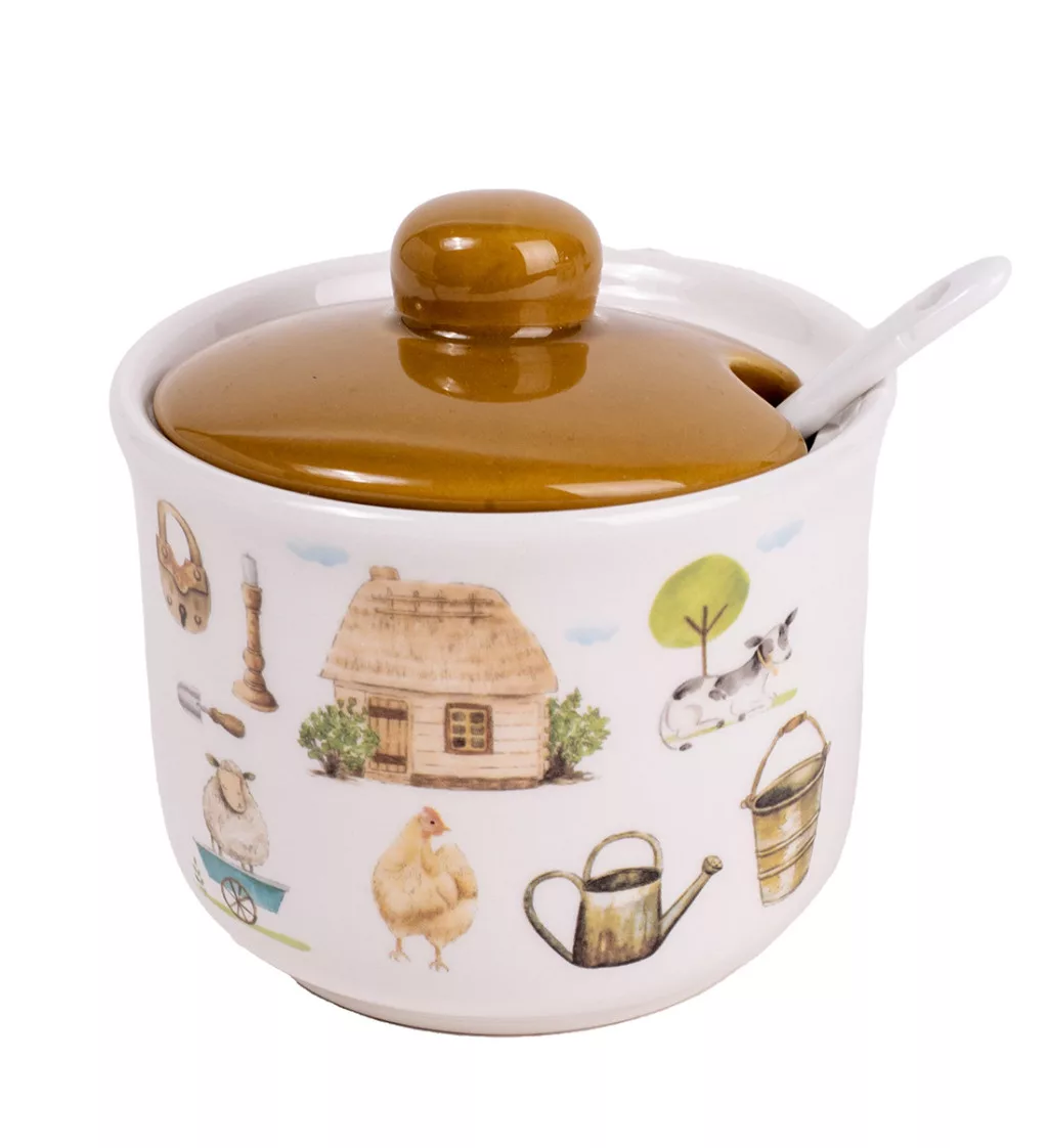 Happy Farm kerámia cukortartó kanállal Szín: fehér/barna, farm dekorációval •1.990Ft |