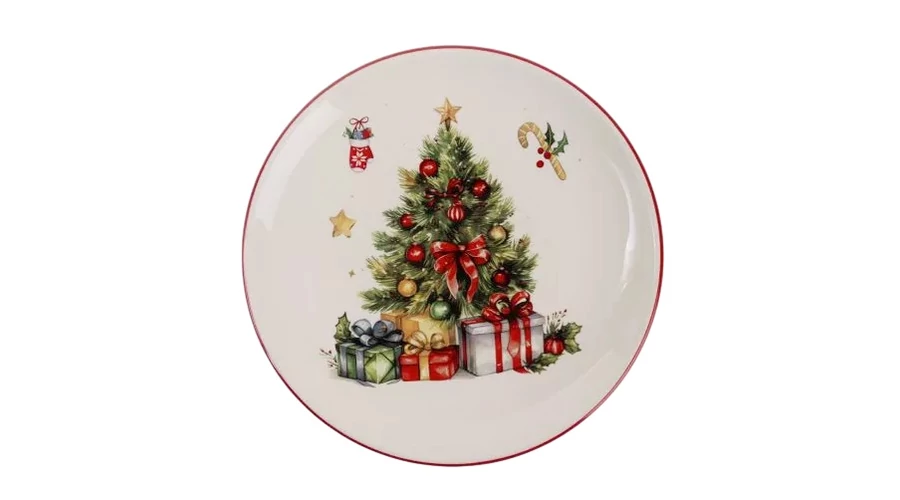 Karácsonyi kerámia tányér fenyőfa dekorációval Méret: Ø 21 cm Szín: fehér/piros, fenyőfa dekorációval •2.690Ft |