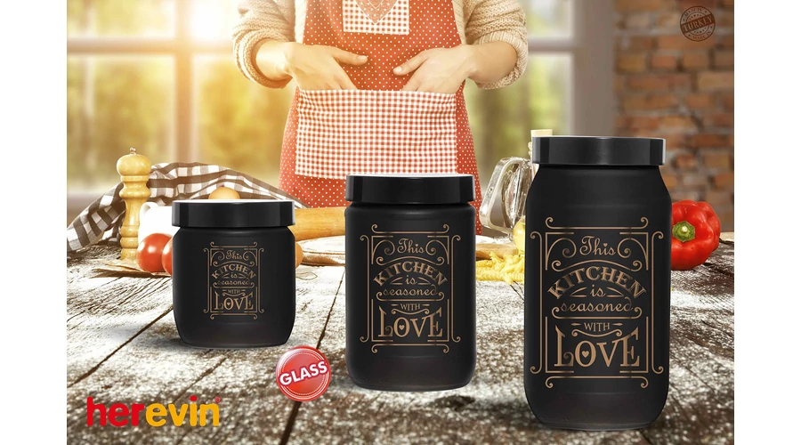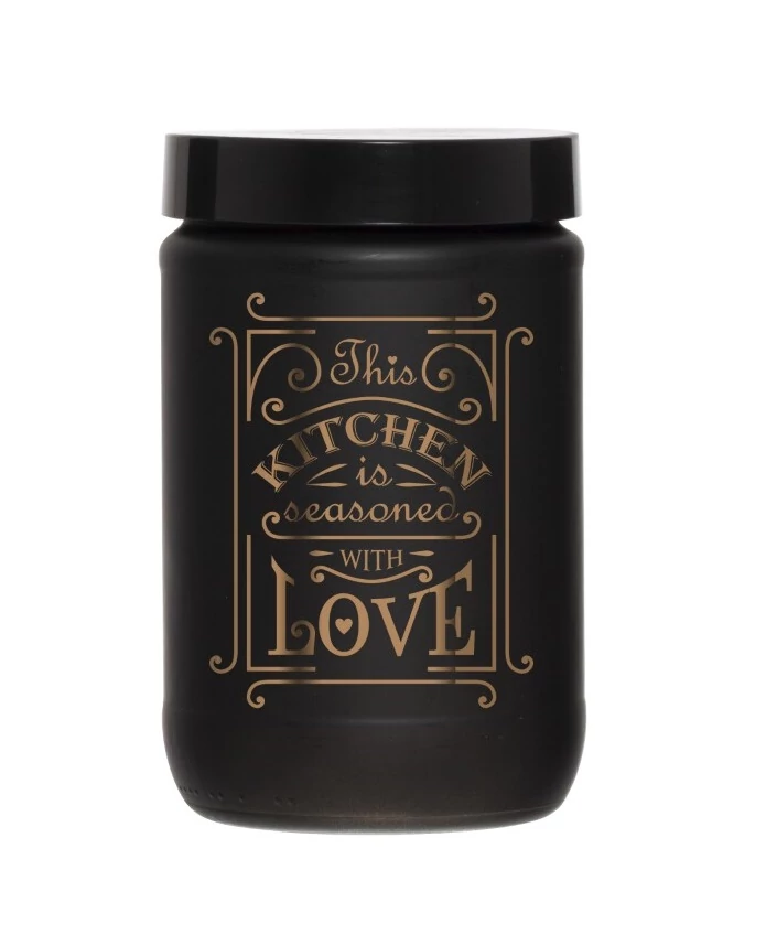 Kitchen Love üveg tároló fedővel Kapacitás: 660 ml Szín: matt fekete, dekorációval •1.090Ft |
