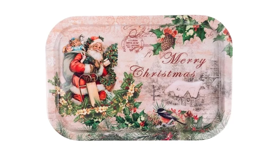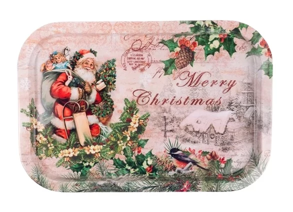 Szögletes karácsonyi bádog tálca